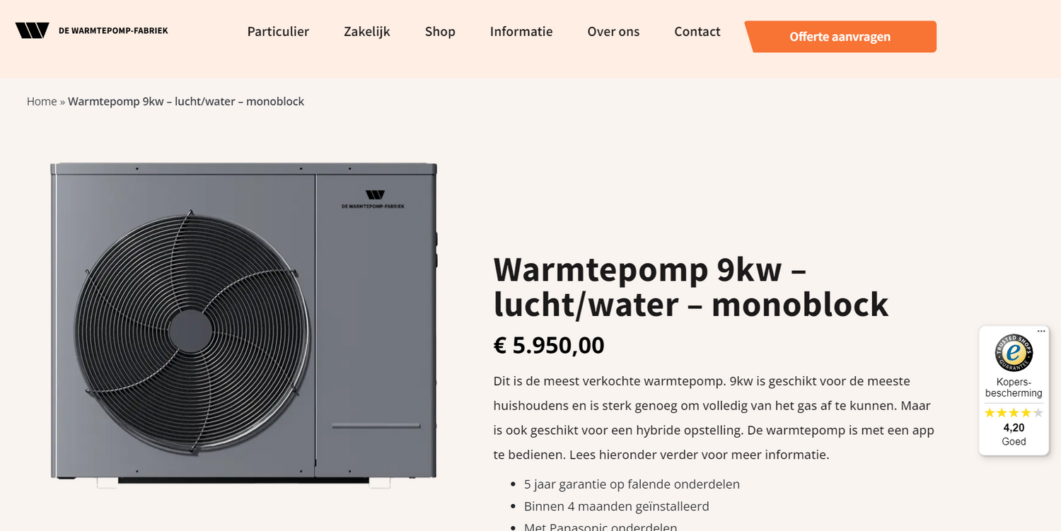 De productomschrijvingen bij de Warmtepomp-fabriek moeten duidelijk en compleet zijn. SEO toegepast.
